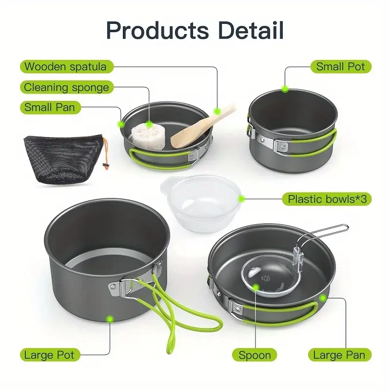 Bu 10 parçalı yüngül və yapışmayan qazma qab-qacaq seti düşərgə, dağ yürüşü və pikniklər üçün nəzərdə tutulub. Alüminium ərintisindən hazırlandığı üçün həm dayanıqlı, həm də daşımaq asandır. Tava, qazança və digər vacib hissələri bir yerdə toplayaraq rahatlıqla çantana yerləşdirə bilərsən.
